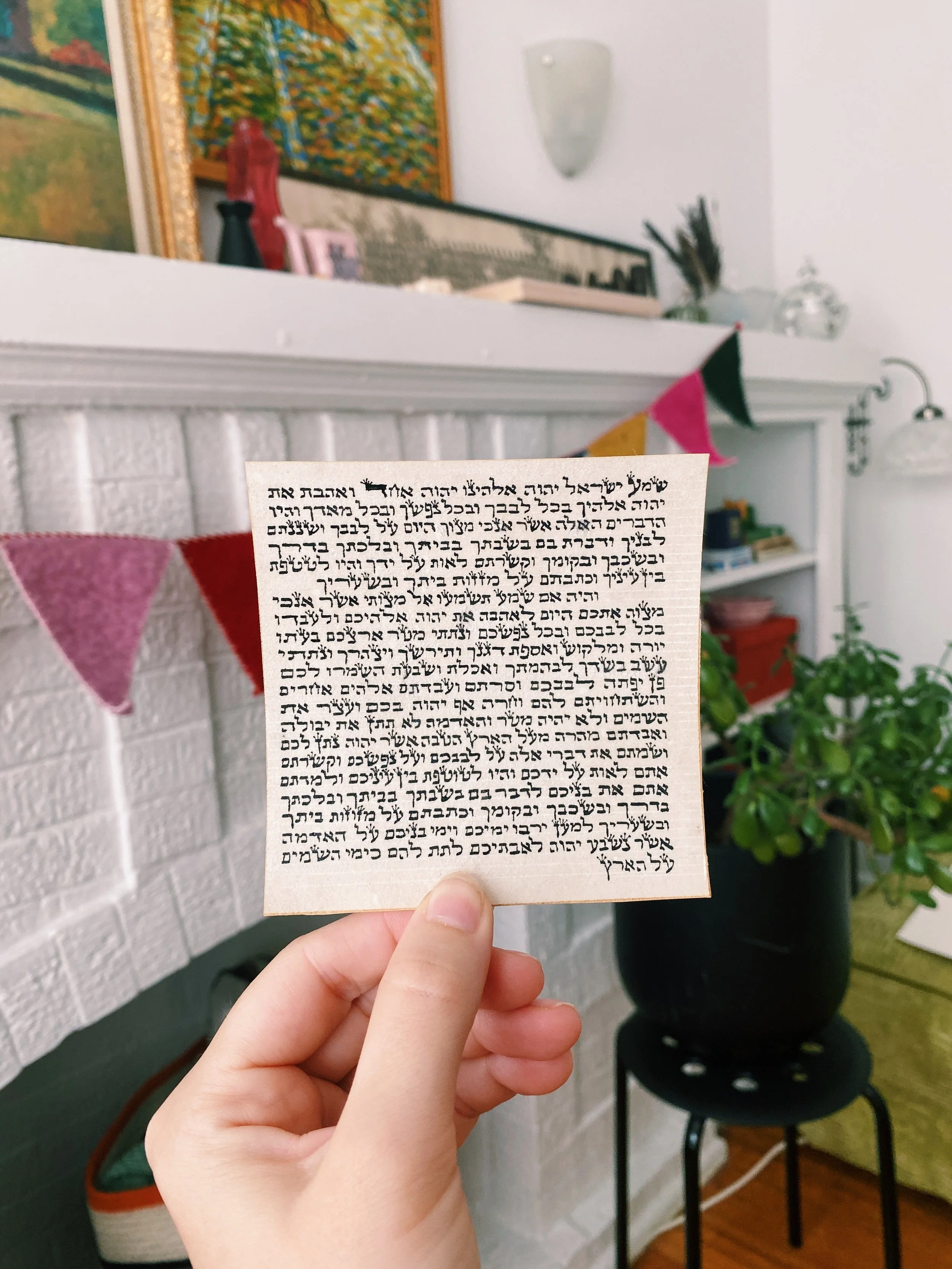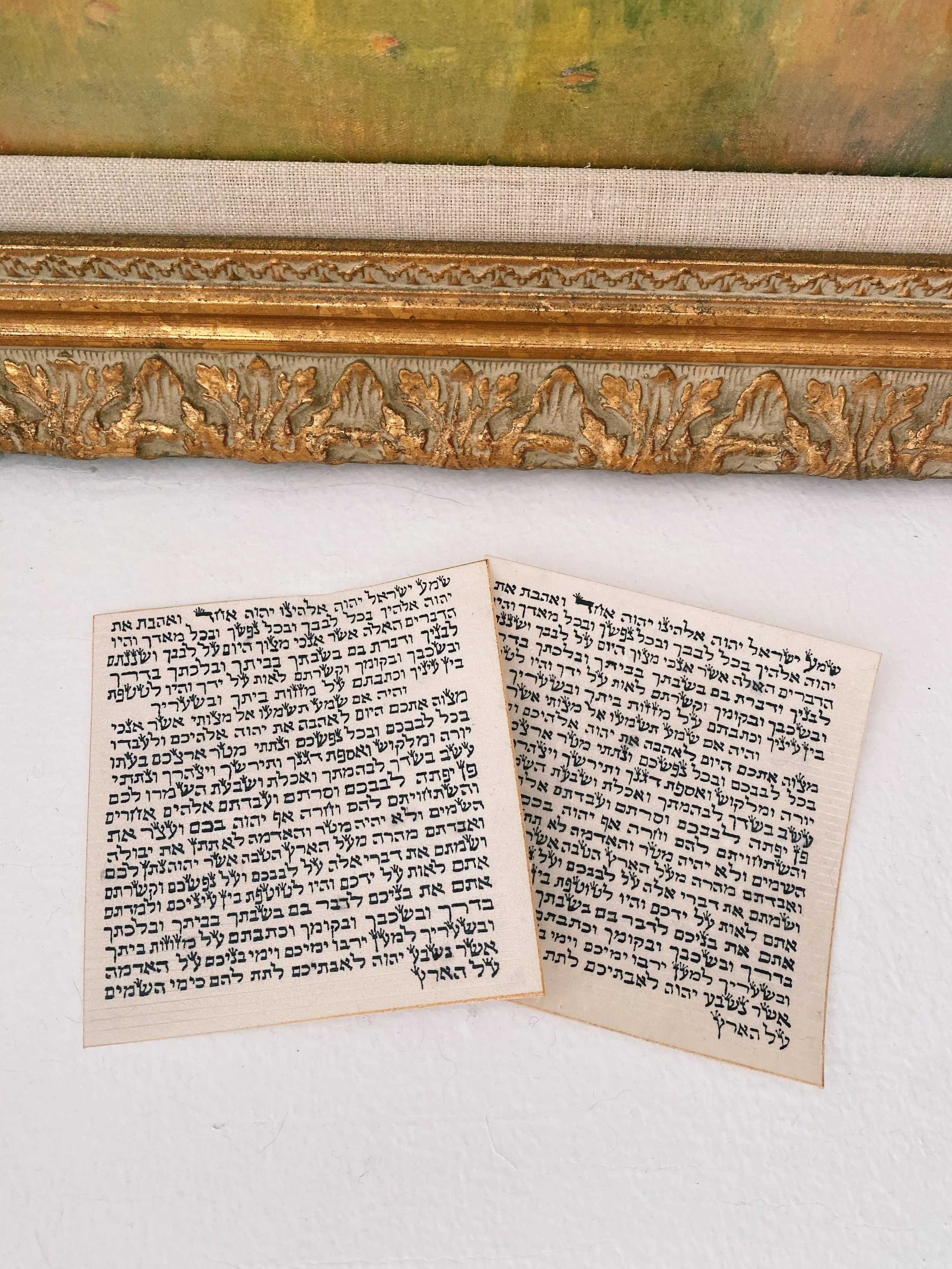 Please let us know your preference of size (4” or 5”), script (Ashkenazi or Sephardi), and parchment type (roadkill or hunted), or if you have no preference at all, when ordering by writing your preferences in the notes section at checkout!